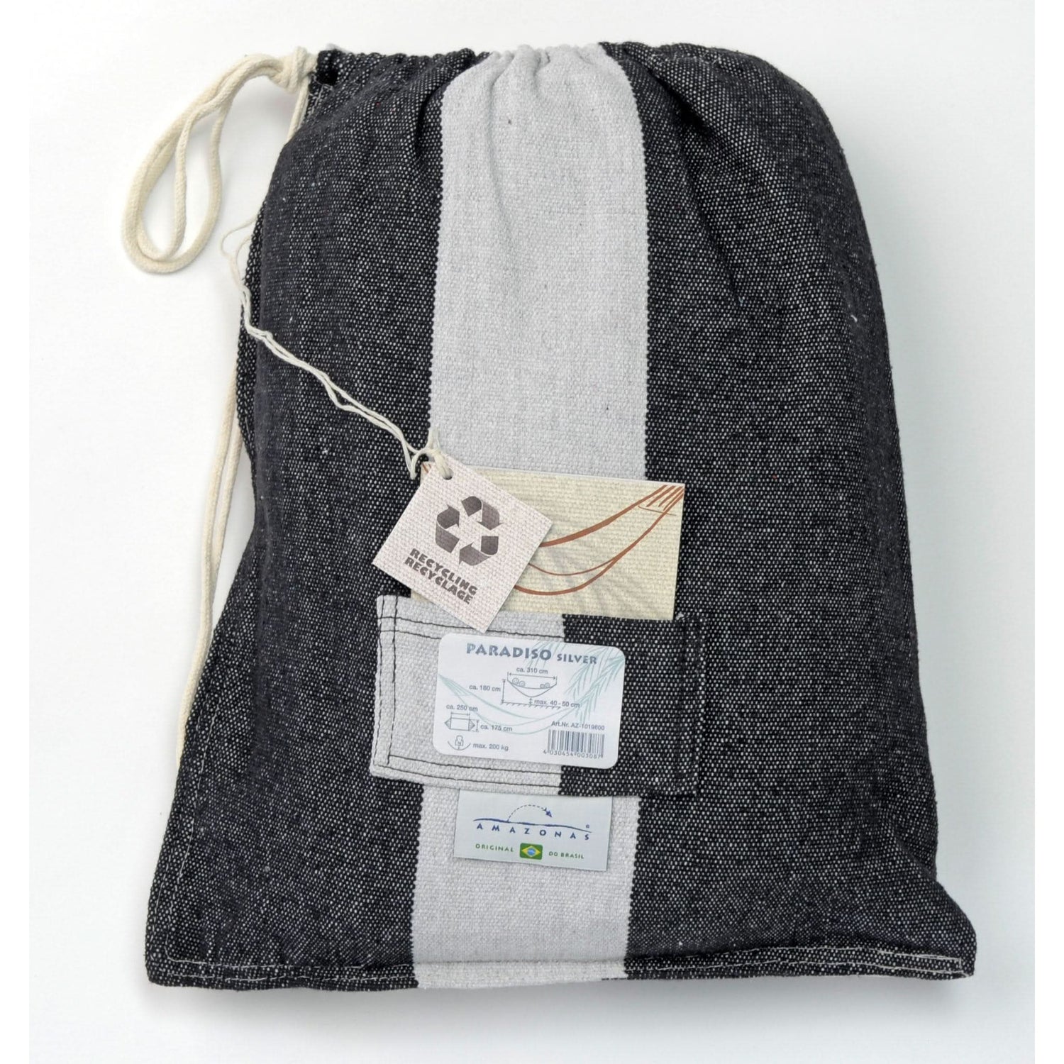 The Paradiso Family Hammock is a luxurious, spacious hammock in elegant silver hues, designed to comfortably accommodate the entire family. Made with hand-woven, extra-thick cords for durability and crafted from soft yet strong cotton, it ensures ultimate relaxation.