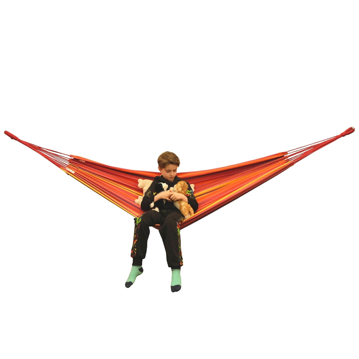 | Versatile Set | 150 kg | Connects to existing stands, ropes, and hammock fixings | Older kids and soft toys | The Versatile Set is ideal for those who would like to frequently move the hammock's position. It's durable and safe and provides your child with endless possibilities, The hammock can even be hung under a bunk bed! |