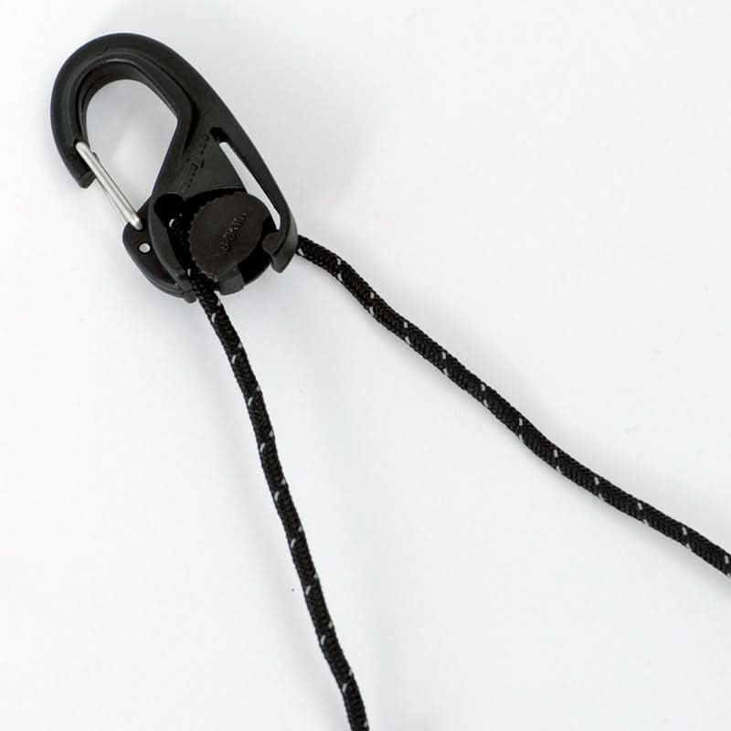 Traveller Tarp Forest is suspended from the attachment points of the hammock and tightened (pegs and guy ropes with adjustment carabiners are included).